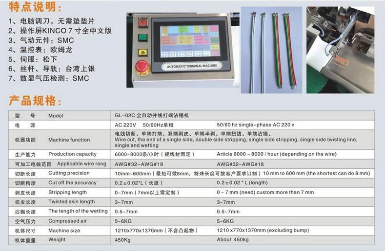 7. 全電腦數控調試:刀口大小,剝皮長度,打端深度,沾錫深度